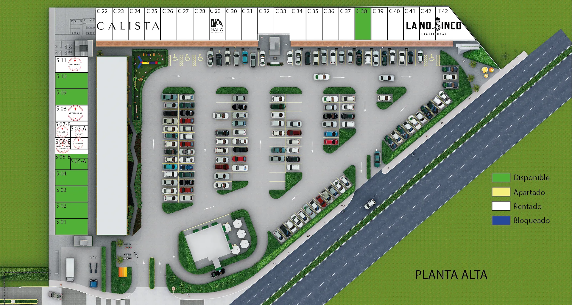 131 cajones de estacionamiento