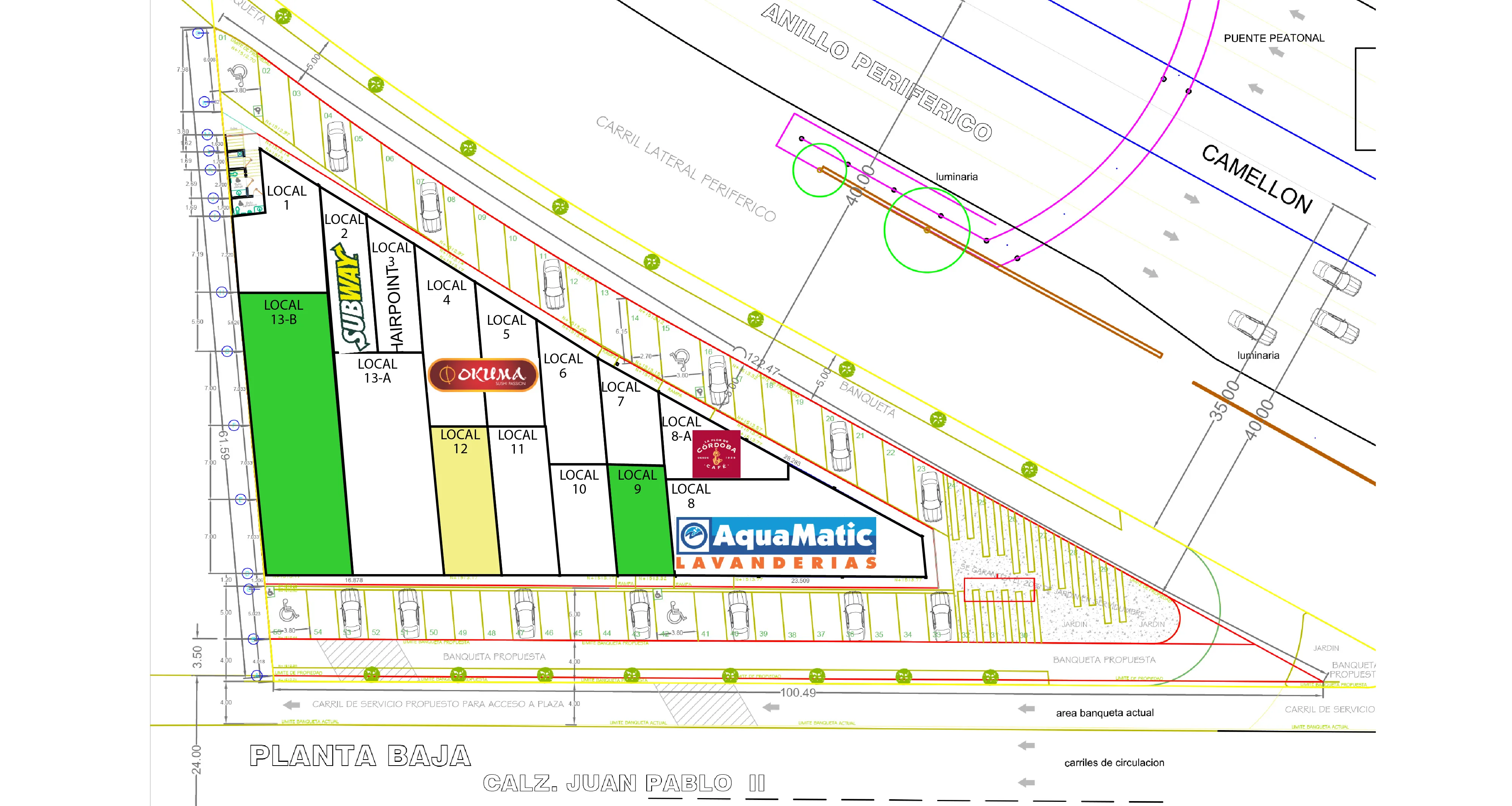 El terreno cuenta con un frente de mas de 200 metros hacia Av. Periférico y de más de 150 metros hacia la Av. Juan Pablo II, ambas vialidades de suma importancia y con grandes aforos vehiculares lo que permitirá que el desarrollo cuente con gran proyección e impacto hacia ambas vialidades, en la zona de Tetlán Río Verde, Gdl., Jal.